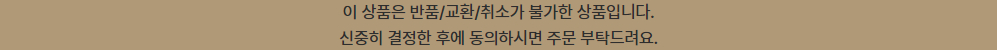 ※반품관련해서는 1:1문의게시판이나 고객센터 02-2608-0010을 이용해 주시기 바랍니다. 바로가기